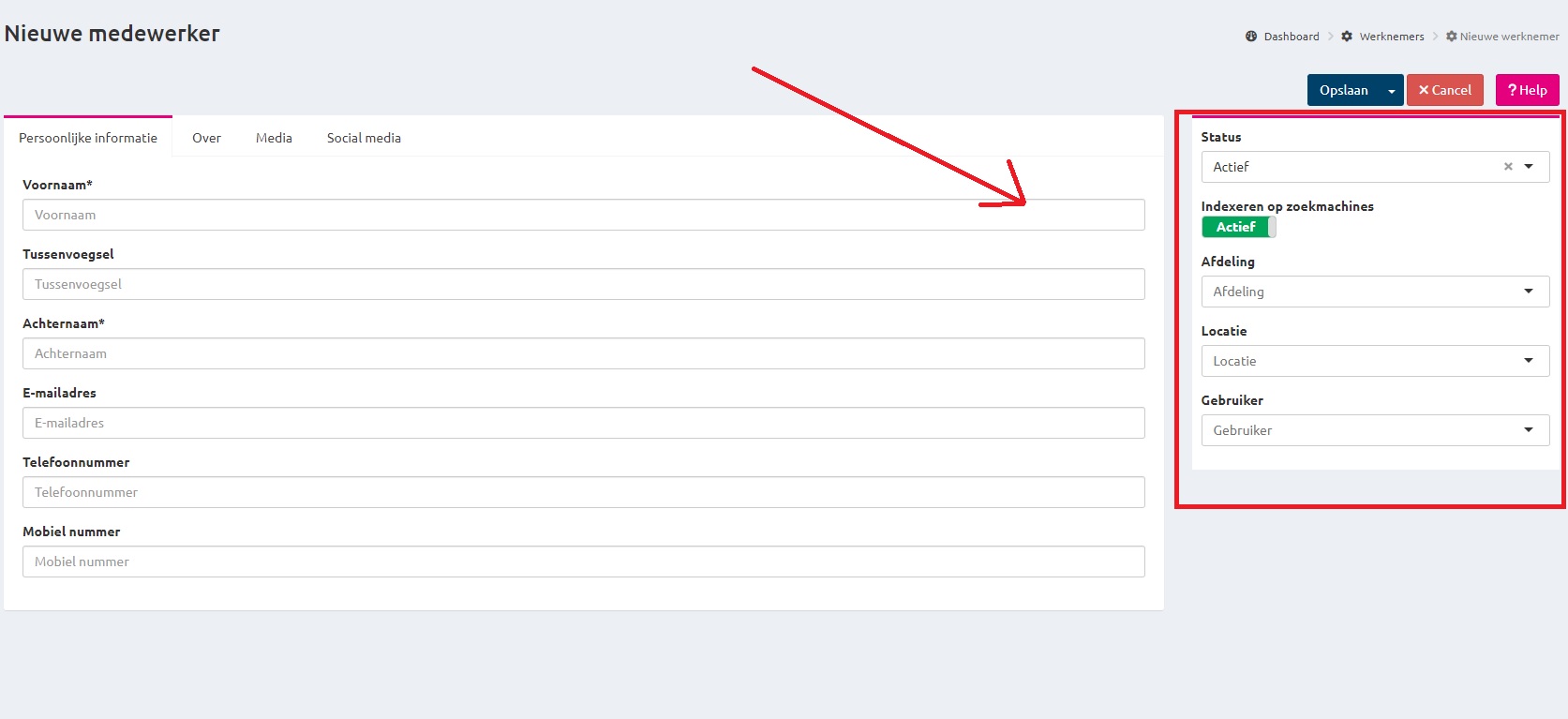 Indien de persoon bij een afdeling hoort kan je deze via de sidebar toevoegen.